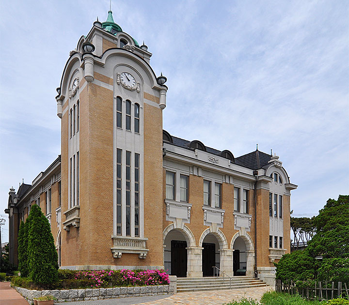 郡山市の市制施行を記念して建てられた公会堂。改修工事を受け、建設当初に近い状態に復元されている。オランダ・ハーグの平和宮がモデルとされ、壁面のデザインは正円アーチと矩形窓の組み合わせで構成され、コーナーは縦連窓を持つ塔屋で締める。1920年代にもなると日本の建築レベルもかなり上がっていて、様式建築を建てるのもこなれた感がある。