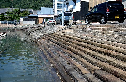 ![]() #2:雁木とは階段状の岸壁のことで、浮き桟橋のない時代に潮の干満に関係なく船にアクセスするための工夫だ。(こういう被写体にはPLフィルターが欲しかった…) |