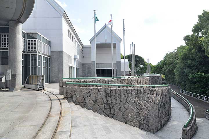 比治山公園という小高い丘に建つ国内初の公立現代美術館。園内にはやはり国内初の公立漫画図書館もある。建築家黒川紀章にとっても本作は最大級の作品であり(国立新美術館はさておき)、学会賞を受賞している。